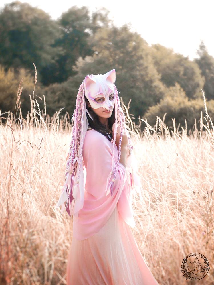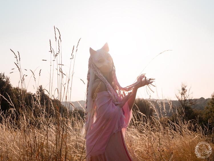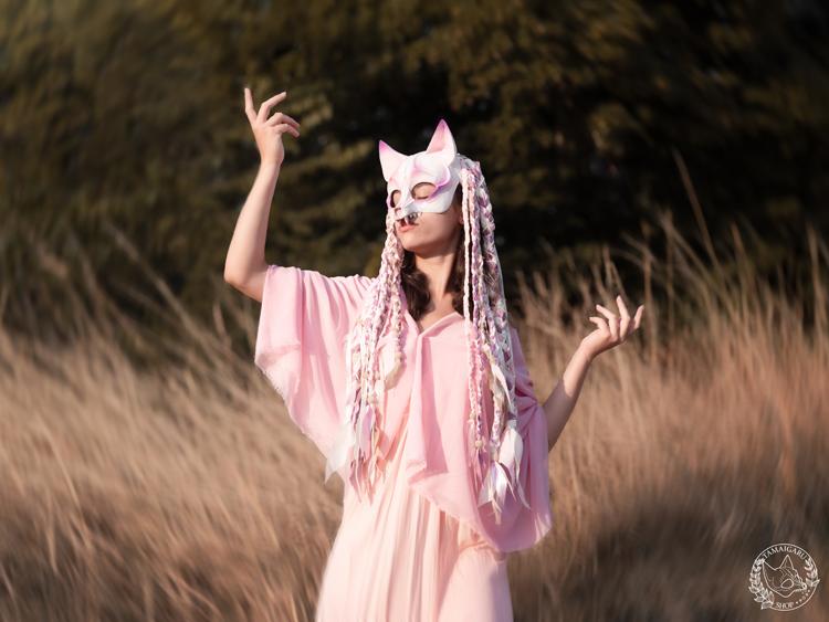Une pièce complètement unique composée d’un masque et d’une partie « coiffe » confectionnée à l’aide de différentes matières textiles !